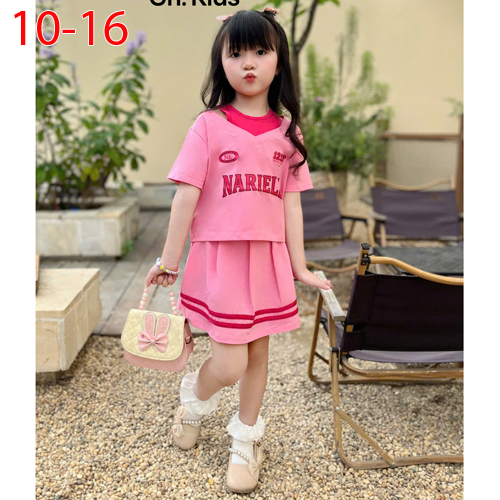 A488950 - Set váy bé gái chất liệu vải cotton áo in chữ chân váy chạy sọc_Size 10-16
