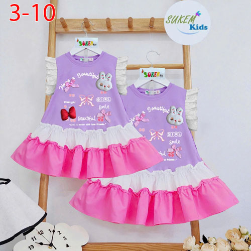 A489052 - Đầm xinh thiết kế cắt phối tùng đuôi cá dáng xoè tiểu thư tay cánh tiên chạy ren nhún bèo