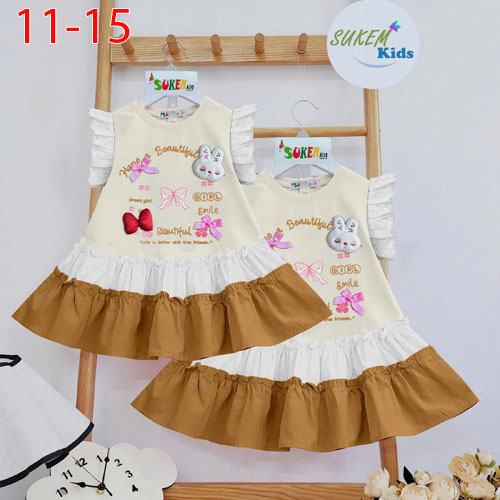 A489061 - Đầm xinh thiết kế cắt phối tùng đuôi cá dáng xoè tiểu thư tay cánh tiên chạy ren nhún bèo