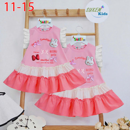 A489063 - Đầm xinh thiết kế cắt phối tùng đuôi cá dáng xoè tiểu thư tay cánh tiên chạy ren nhún bèo