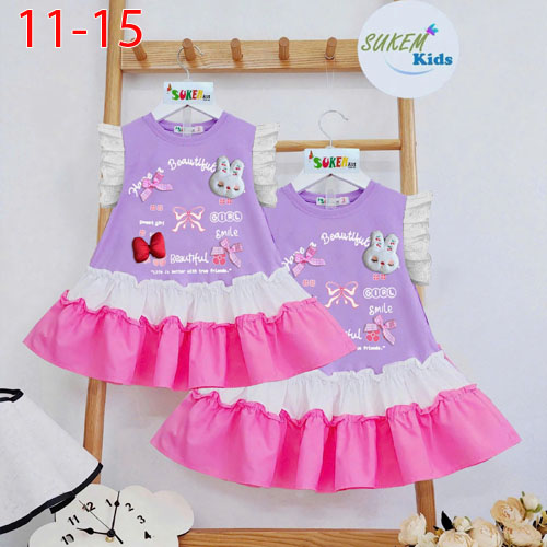 A489065 - Đầm xinh thiết kế cắt phối tùng đuôi cá dáng xoè tiểu thư tay cánh tiên chạy ren nhún bèo