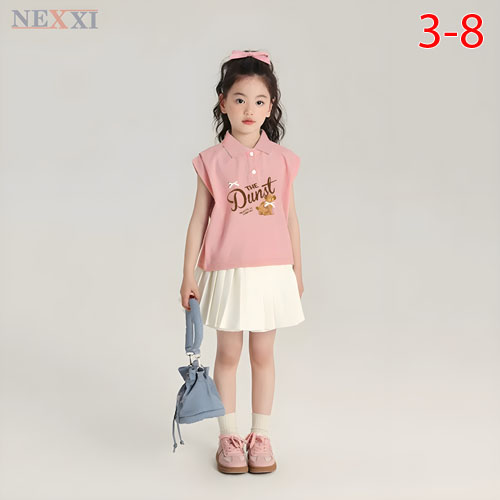 A489066 - Nexxi Win Win set váy siêu xinh áo thun cotton 4c in cún chân váy kaki mềm nhẹ xếp ly_Size