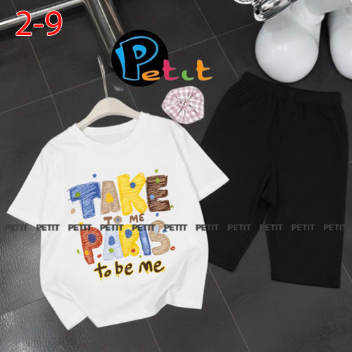 A489082 - Bộ bé gái thun cotton 4c áo tay ngắn mix cùng quần ôm ngố in Kitty Cún_Size 2-9