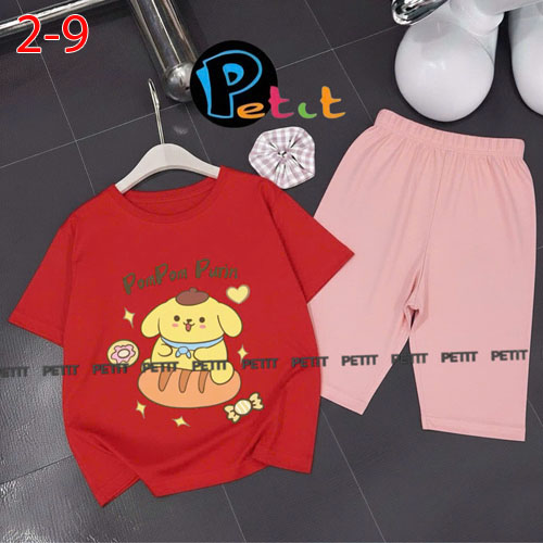 A489087 - Bộ bé gái thun cotton 4c áo tay ngắn mix cùng quần ôm ngố in Kitty Cún_Size 2-9