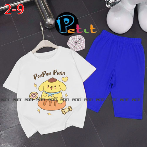 A489089 - Bộ bé gái thun cotton 4c áo tay ngắn mix cùng quần ôm ngố in Kitty Cún_Size 2-9