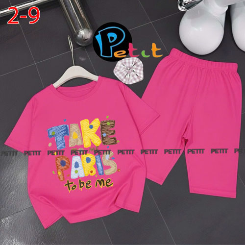 A489092 - Bộ bé gái thun cotton 4c áo tay ngắn mix cùng quần ôm ngố in Kitty Cún_Size 2-9