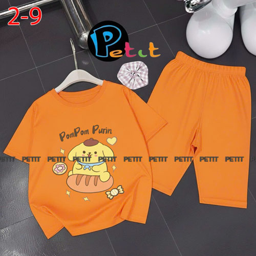 A489095 - Bộ bé gái thun cotton 4c áo tay ngắn mix cùng quần ôm ngố in Kitty Cún_Size 2-9