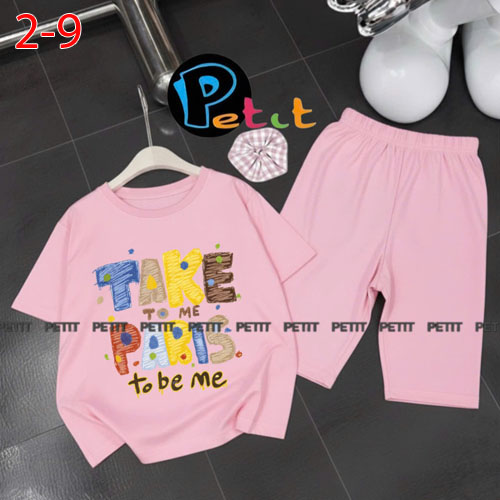 A489099 - Bộ bé gái thun cotton 4c áo tay ngắn mix cùng quần ôm ngố in Kitty Cún_Size 2-9