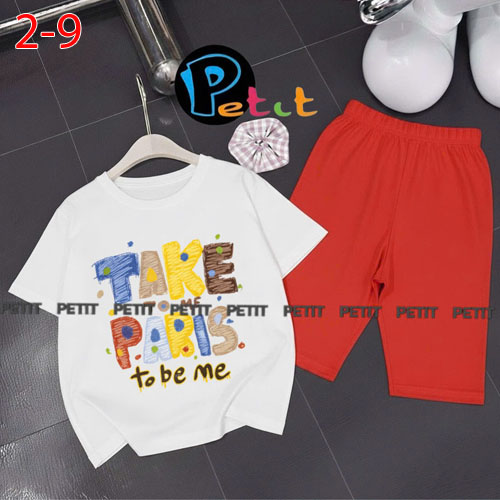 A489100 - Bộ bé gái thun cotton 4c áo tay ngắn mix cùng quần ôm ngố in Kitty Cún_Size 2-9