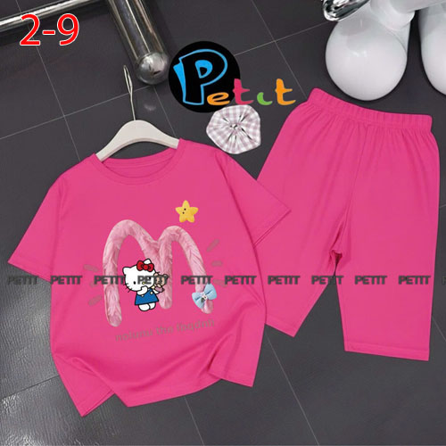 A489103 - Bộ bé gái thun cotton 4c áo tay ngắn mix cùng quần ôm ngố in Kitty Cún_Size 2-9