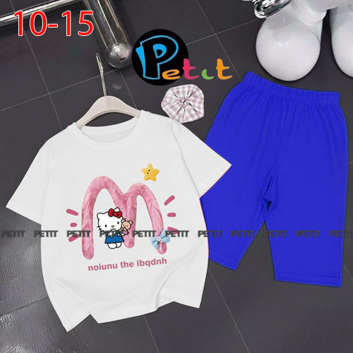 A489113 - Bộ bé gái thun cotton 4c áo tay ngắn mix cùng quần ôm ngố in Kitty Cún_Size 10-15