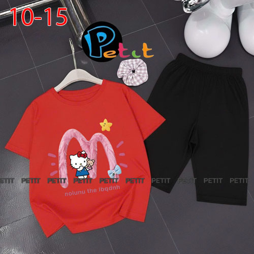 A489114 - Bộ bé gái thun cotton 4c áo tay ngắn mix cùng quần ôm ngố in Kitty Cún_Size 10-15