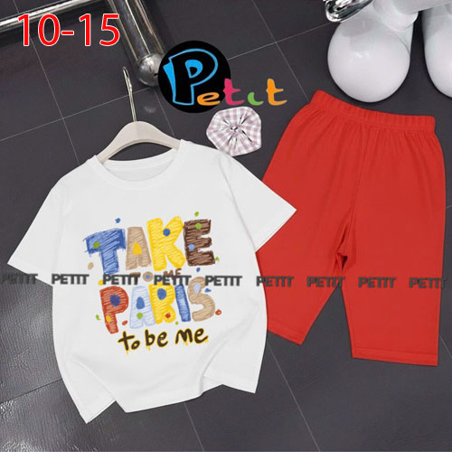 A489121 - Bộ bé gái thun cotton 4c áo tay ngắn mix cùng quần ôm ngố in Kitty Cún_Size 10-15