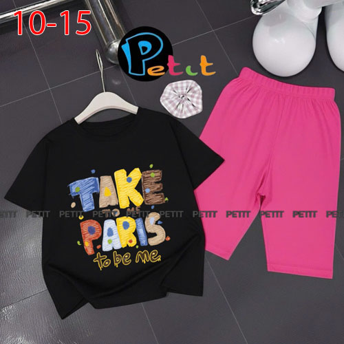 A489128 - Bộ bé gái thun cotton 4c áo tay ngắn mix cùng quần ôm ngố in Kitty Cún_Size 10-15