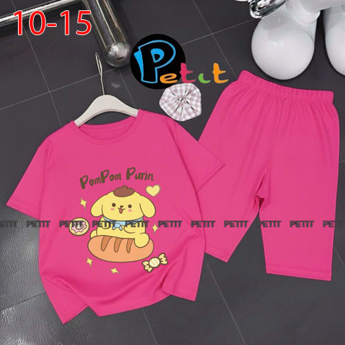 A489135 - Bộ bé gái thun cotton 4c áo tay ngắn mix cùng quần ôm ngố in Kitty Cún_Size 10-15