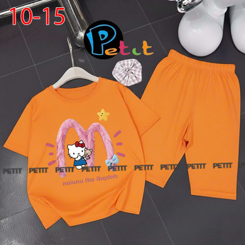 A489142 - Bộ bé gái thun cotton 4c áo tay ngắn mix cùng quần ôm ngố in Kitty Cún_Size 10-15