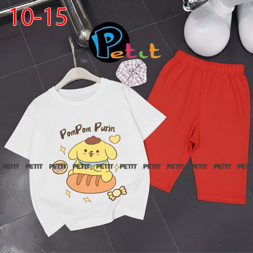 A489151 - Bộ bé gái thun cotton 4c áo tay ngắn mix cùng quần ôm ngố in Kitty Cún_Size 10-15