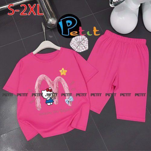 A489159 - Bộ bé gái thun cotton 4c áo tay ngắn mix cùng quần ôm ngố in Kitty Cún_Size S-2XL