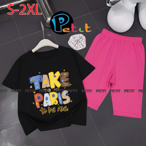 A489169 - Bộ bé gái thun cotton 4c áo tay ngắn mix cùng quần ôm ngố in Kitty Cún_Size S-2XL