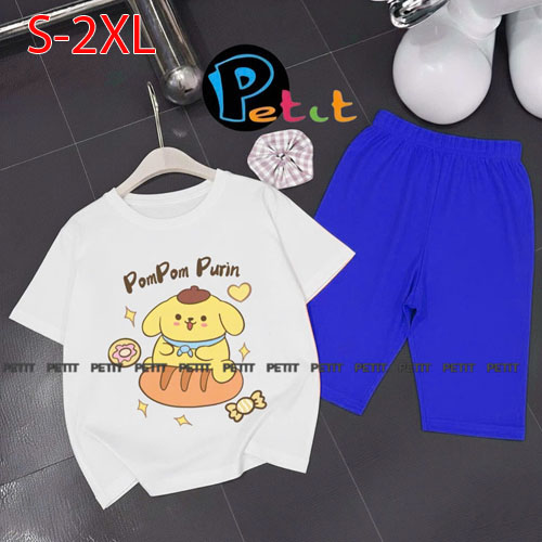 A489173 - Bộ bé gái thun cotton 4c áo tay ngắn mix cùng quần ôm ngố in Kitty Cún_Size S-2XL