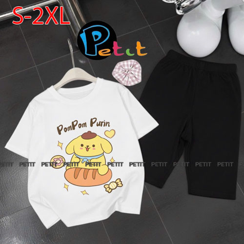 A489174 - Bộ bé gái thun cotton 4c áo tay ngắn mix cùng quần ôm ngố in Kitty Cún_Size S-2XL