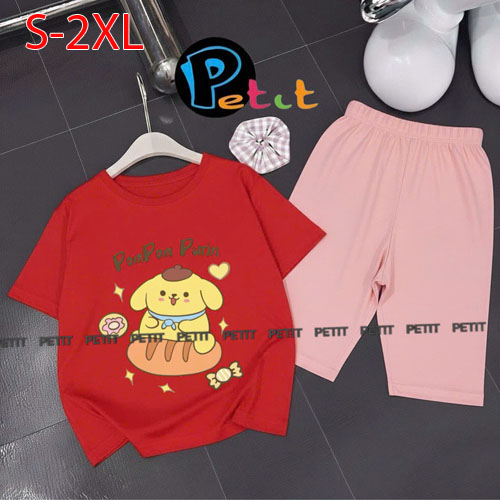 A489175 - Bộ bé gái thun cotton 4c áo tay ngắn mix cùng quần ôm ngố in Kitty Cún_Size S-2XL