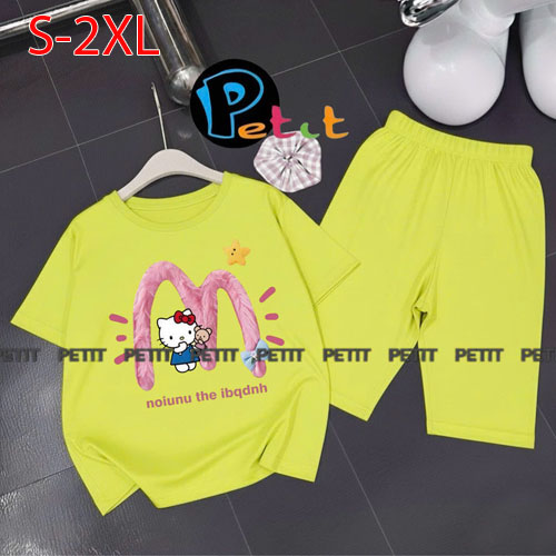 A489177 - Bộ bé gái thun cotton 4c áo tay ngắn mix cùng quần ôm ngố in Kitty Cún_Size S-2XL
