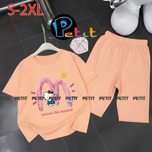 A489186 - Bộ bé gái thun cotton 4c áo tay ngắn mix cùng quần ôm ngố in Kitty Cún_Size S-2XL