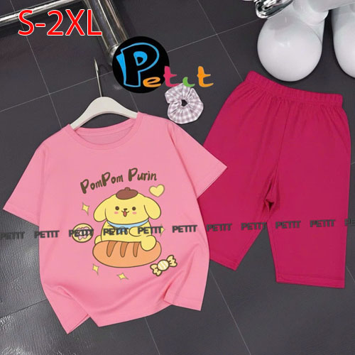 A489187 - Bộ bé gái thun cotton 4c áo tay ngắn mix cùng quần ôm ngố in Kitty Cún_Size S-2XL