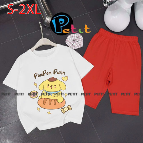 A489192 - Bộ bé gái thun cotton 4c áo tay ngắn mix cùng quần ôm ngố in Kitty Cún_Size S-2XL