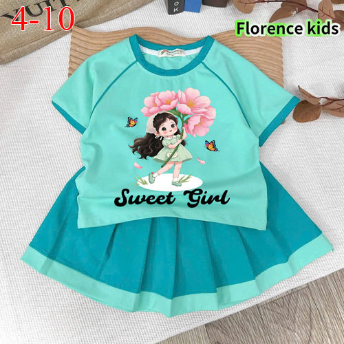A489279 - Set váy Siêu phẩm mới cho bé áo thun in cô bé Sweet Girl_Size 4-10