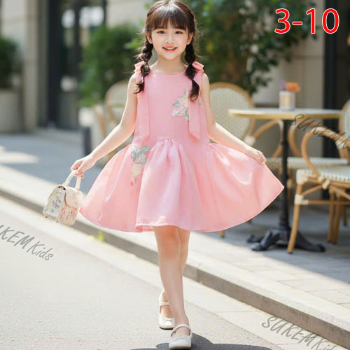 A489311 - Đầm may đuôi cá phối ren hoa Thêu 5d 2 lớp pom A cắt nhún sóng baby đính Nơ 2 bên vai_Size