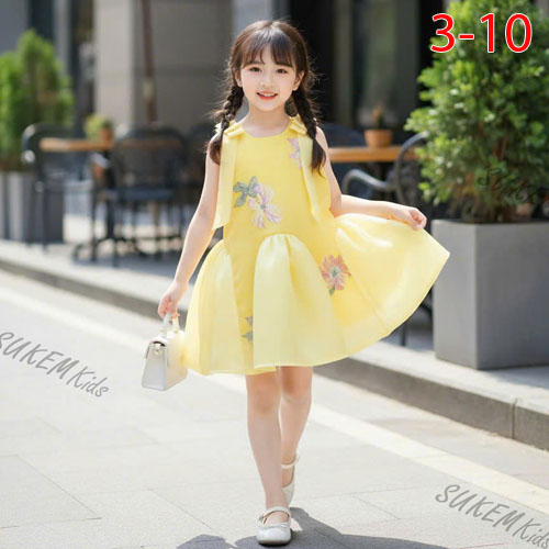 A489312 - Đầm may đuôi cá phối ren hoa Thêu 5d 2 lớp pom A cắt nhún sóng baby đính Nơ 2 bên vai_Size