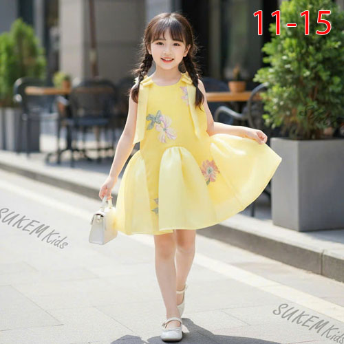 A489315 - Đầm may đuôi cá phối ren hoa Thêu 5d 2 lớp pom A cắt nhún sóng baby đính Nơ 2 bên vai_Size