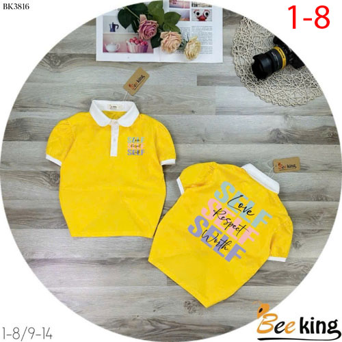 A489339 - Áo bé gái cổ trụ Self thun cotton 4c_Size 1-8