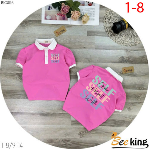 A489343 - Áo bé gái cổ trụ Self thun cotton 4c_Size 1-8