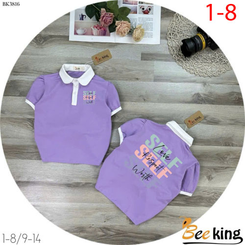 A489344 - Áo bé gái cổ trụ Self thun cotton 4c_Size 1-8