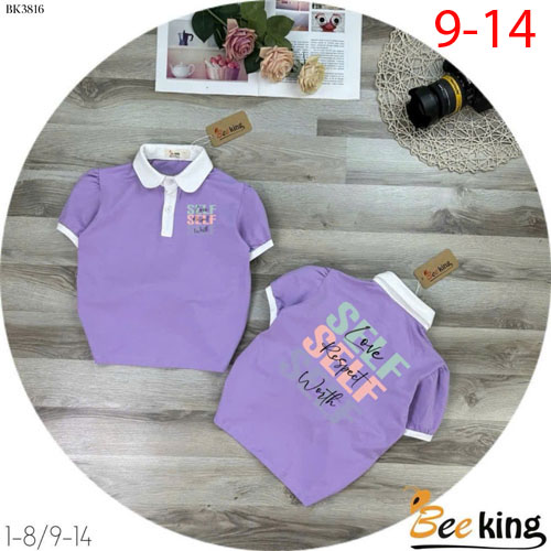 A489347 - Áo bé gái cổ trụ Self thun cotton 4c_Size 9-14