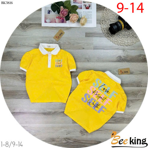 A489352 - Áo bé gái cổ trụ Self thun cotton 4c_Size 9-14