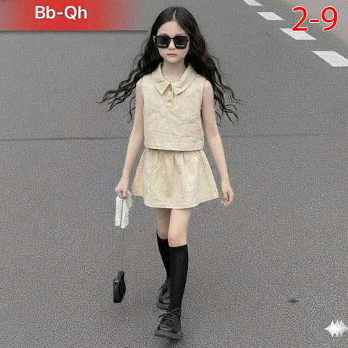 A489353 - Set bé gái bộ chất vải kaki nhập quảng châu thiết kế tỉ mỉ từng chi tiết nhỏ_Size 2-9