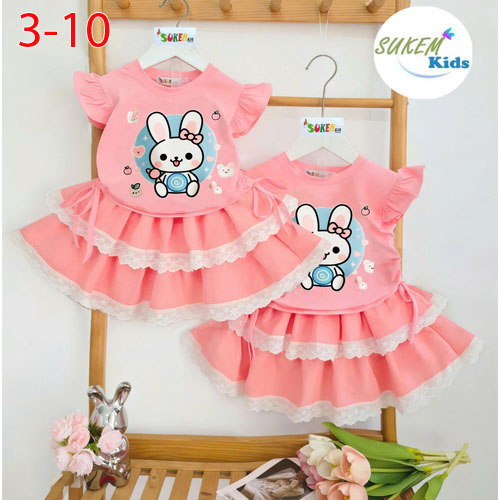 A489391 - Set ép thỏ cute áo rút dây với thiết kế chân váy may 2 tầng vải chuyên dụng chạy phối ren