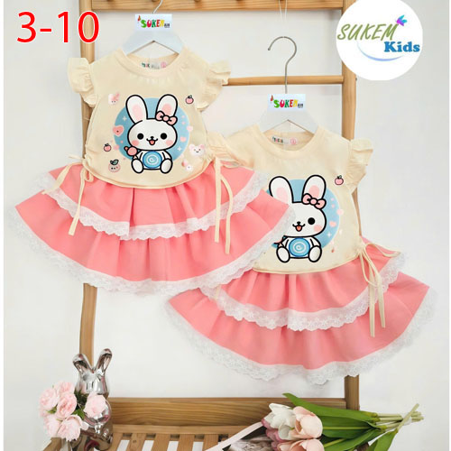 A489392 - Set ép thỏ cute áo rút dây với thiết kế chân váy may 2 tầng vải chuyên dụng chạy phối ren