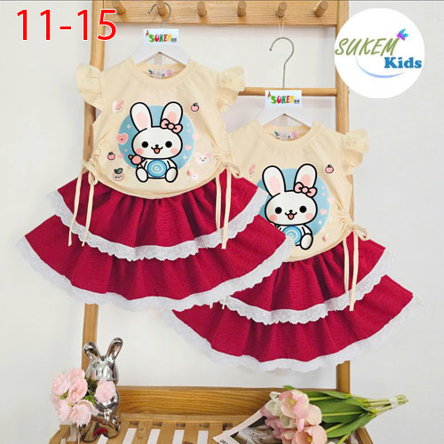 A489394 - Set ép thỏ cute áo rút dây với thiết kế chân váy may 2 tầng vải chuyên dụng chạy phối ren
