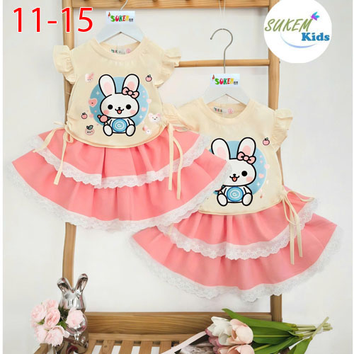 A489395 - Set ép thỏ cute áo rút dây với thiết kế chân váy may 2 tầng vải chuyên dụng chạy phối ren