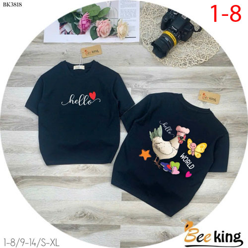 A489399 - Áo form rộng giấu quần Hello gà trống và bướm_Size 1-8