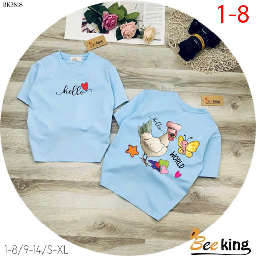 A489402 - Áo form rộng giấu quần Hello gà trống và bướm_Size 1-8