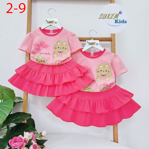 A489496A489495 - Set ép thỏ cute áo ngắn tay với thiết kế chân váy may 2 tầng thun coton 4c_Size 2-9