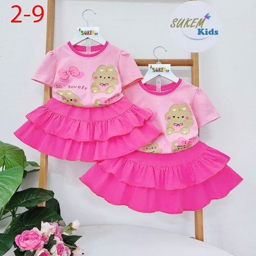 A489497A489495 - Set ép thỏ cute áo ngắn tay với thiết kế chân váy may 2 tầng thun coton 4c_Size 2-9