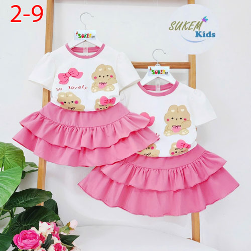 A489500A489495 - Set ép thỏ cute áo ngắn tay với thiết kế chân váy may 2 tầng thun coton 4c_Size 2-9