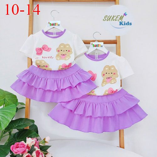 A489502 - Set ép thỏ cute áo ngắn tay với thiết kế chân váy may 2 tầng thun coton 4c_Size 10-14